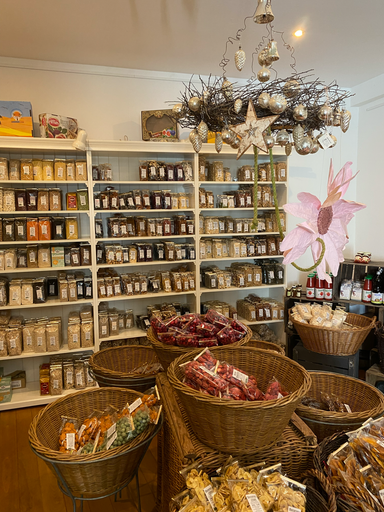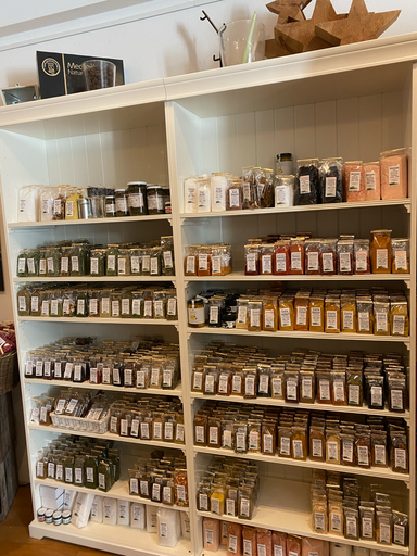 Wir bieten Ihnen in unserem Hofladen unser breites Sortiment an Tees, Gewürzen, Trockenfrüchten, Seifen, Getreideprodukten und Kerzen.